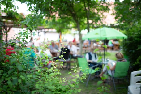 Der Gastgarten bietet bei den Sommerheurigen (bei Schönwetter) ein ganz besonderes Ambiente. Hier kann man in mitten der Altstadt von Stein einen grünen Flecken mit Blick auf Stift Göttweig finden, der zum genießen, verweilen und entspannen einlädt.